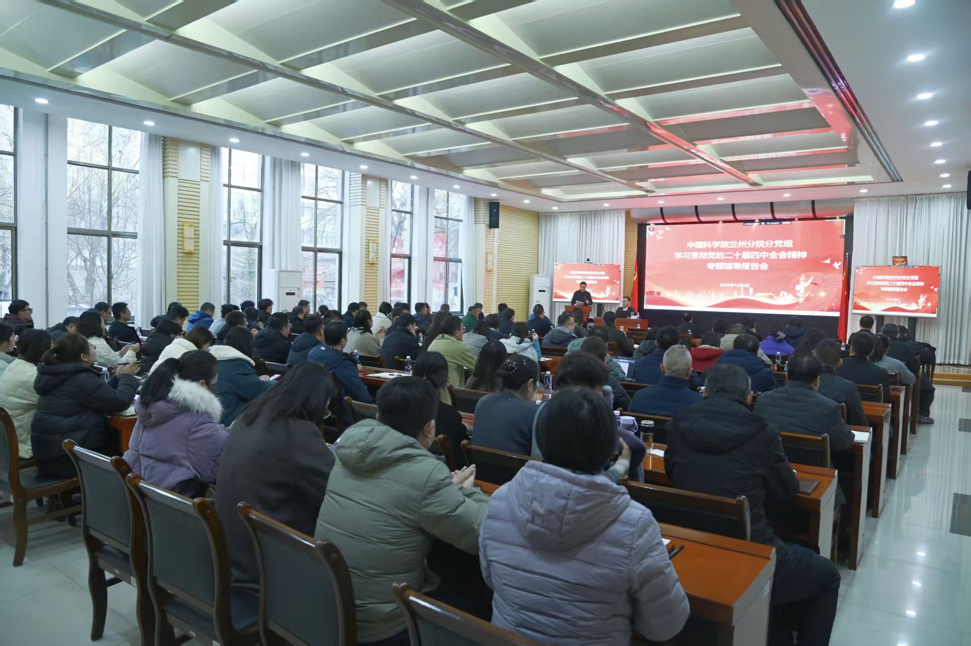 12月2日,中共中國科學(xué)院蘭州分院分黨組舉辦學(xué)習(xí)貫徹黨的二十屆四中全會精神專題輔導(dǎo)報告會。會議由蘭州分院分黨組成員、紀檢組組長吳建剛主持。