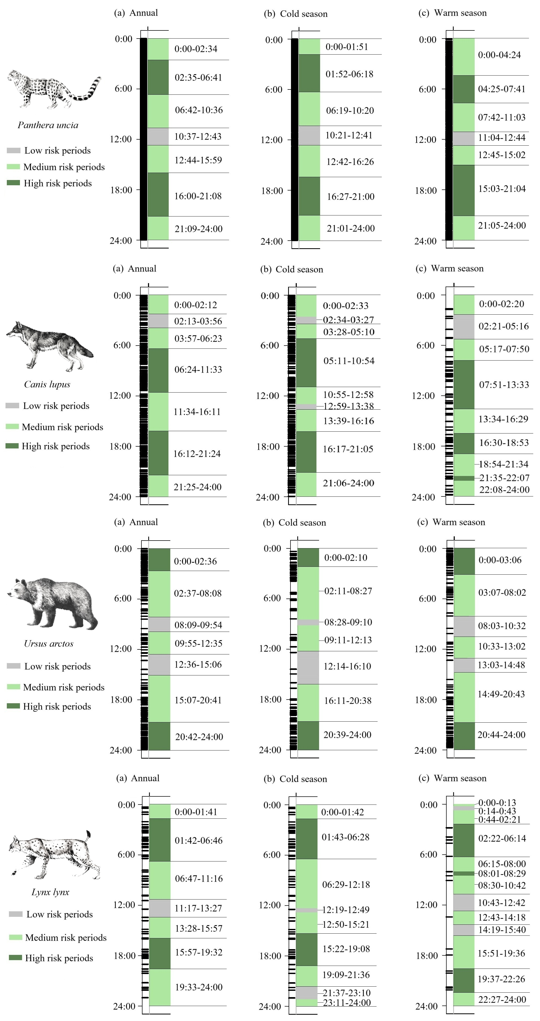 三江源地區(qū)四種食肉動(dòng)物潛在肇事的風(fēng)險(xiǎn)時(shí)段