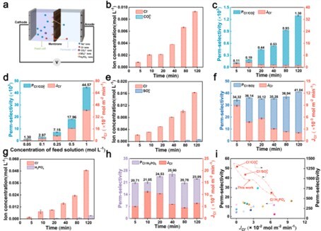 圖2 SPES@HMO對Cl-的特殊選擇性,展現(xiàn)出優(yōu)異的離子篩分性能